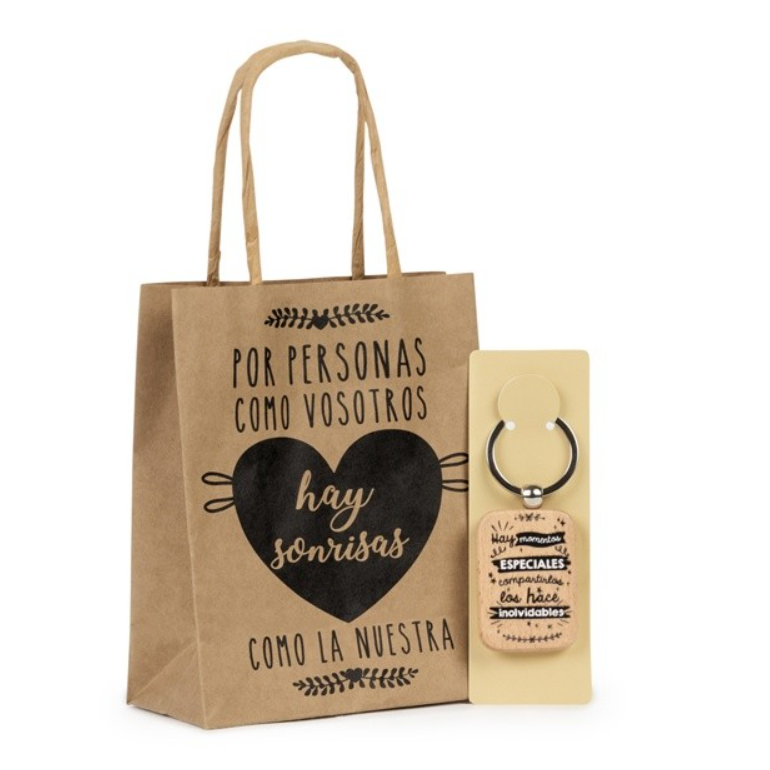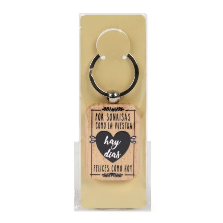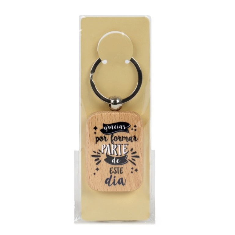 • ¿Quieres sorprender a todos tus invitados con este detallazo? Entonces este detalle es ideal para tu evento, compuesto por un llavero de madera muy original y bonito, este detalle lleva unas frases de agradecimiento para agradecer que tus invitados hayan asistido a su evento. Un regalo que dejará a todos un gran recuerdo de ese día.