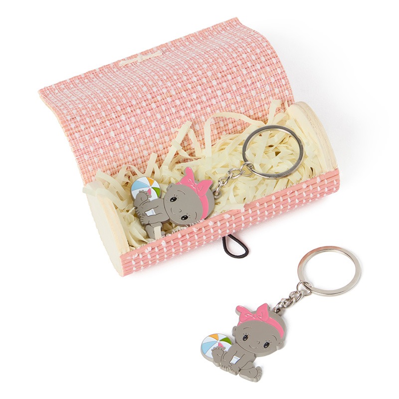 Llavero metal para datos del bebé rosa