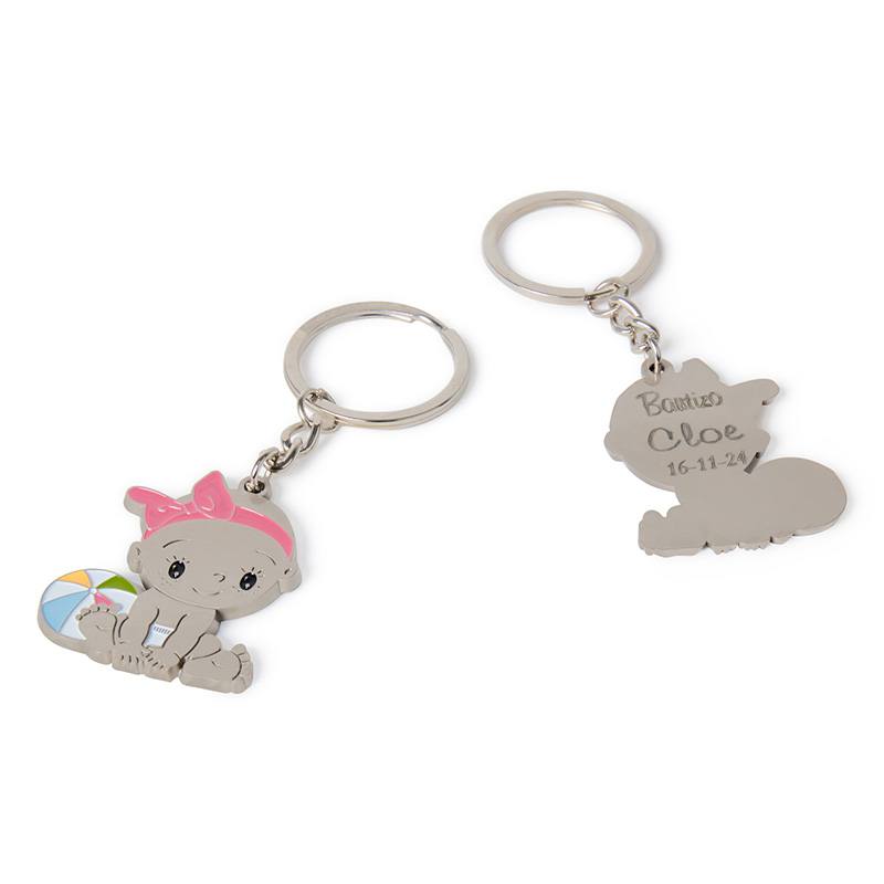Llavero metálico bebé niña con biberón y peladillas