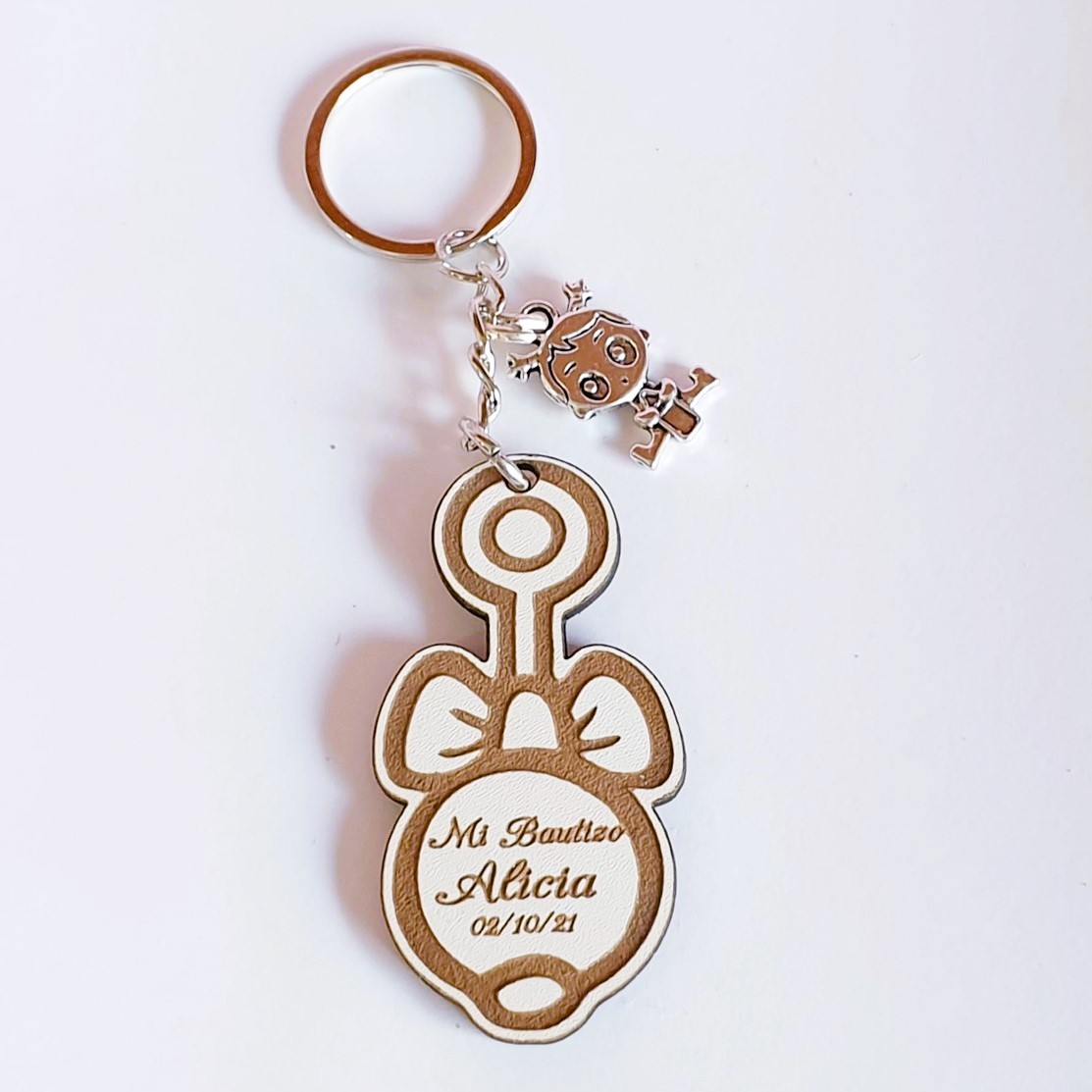 Mas detalles sobre “Llavero madera sonajero” detalle bautizo: