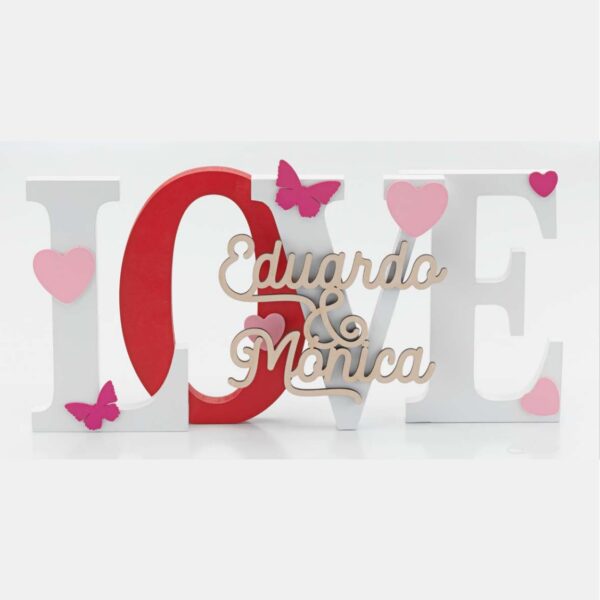 • Palabra LOVE personalizado en el centro con el nombre de los novios