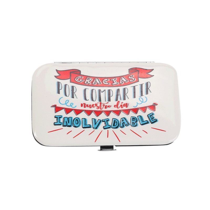 - Set de manicura con frases, práctico detalle que sirve para tener la manicura impecable y llevar unas uñas y una cutícula impresionante, con este regalo ya no hay excusas para no tener las manos perfectas.
