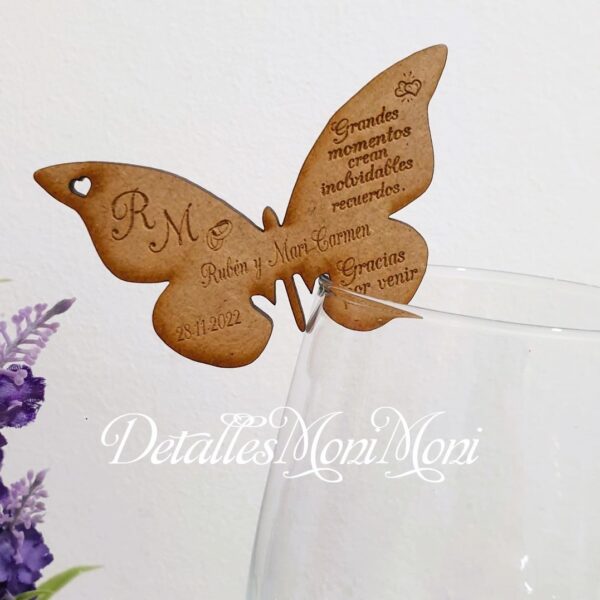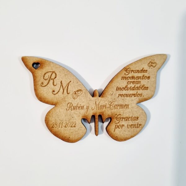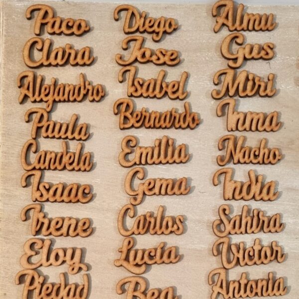 • Los prácticos detalles de boda están troquelados en madera con el nombre de cada invitado o alguna palabra clave de vuestra boda, en el día a día podrán usarlo como marca páginas en su libro favorito, acordándose de vosotros con una sonrisa. Además, cuentan con una elegante presentación en estuche de plástico con base de cartón kraft,