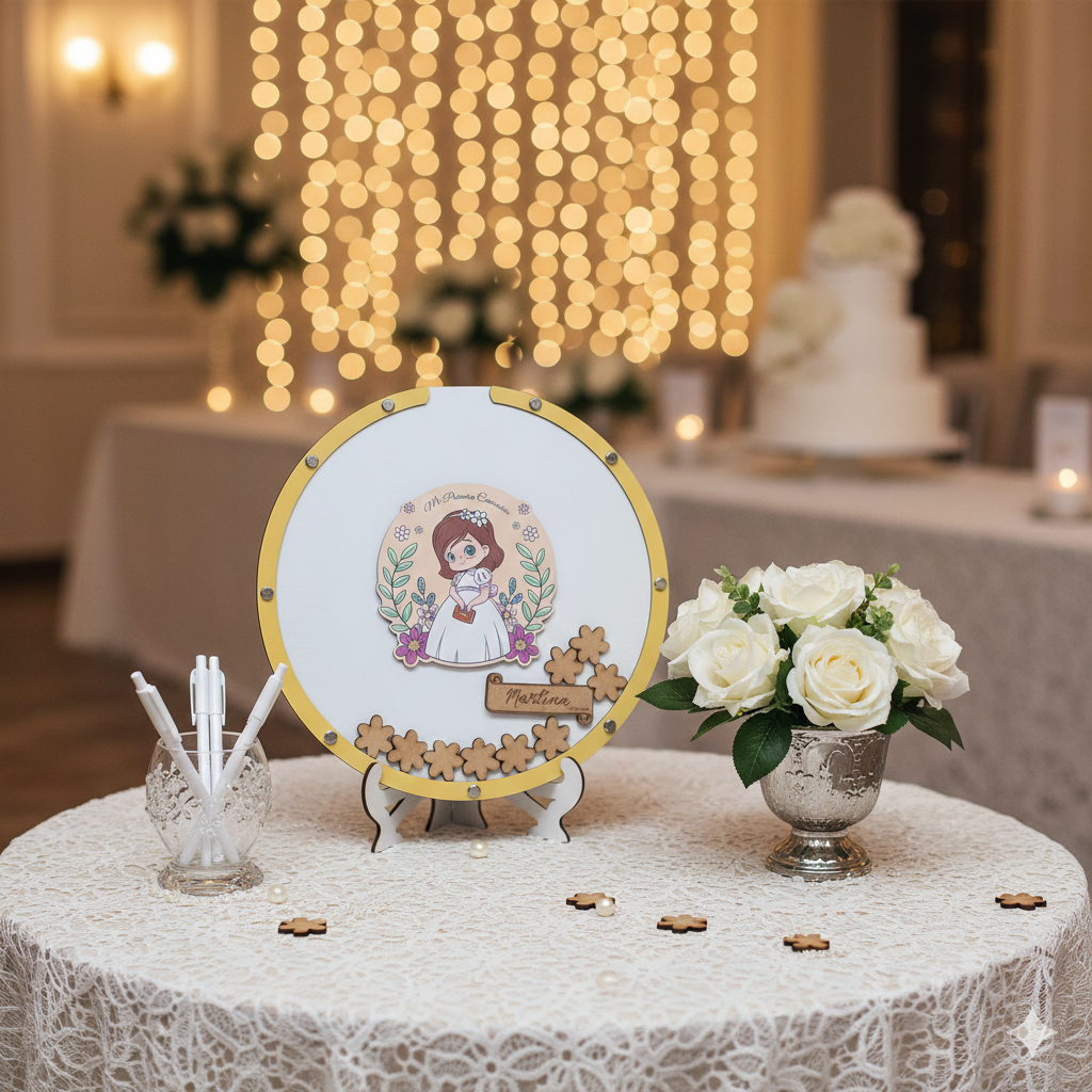 💒 Marco de Firmas para Comunión de Niña Personalizado con 30 Fichas 🌸