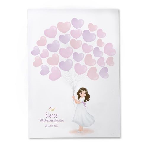 - Una divertida y original alternativa al clásico libro de firmas, con la que sorprenderás a tus invitados para que dejen por escrito su paso por la celebración, en este bonito recuerdo del día de la Comunión.