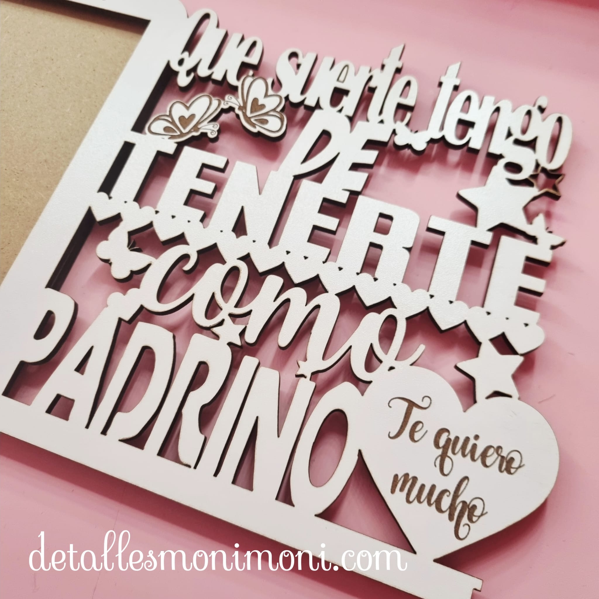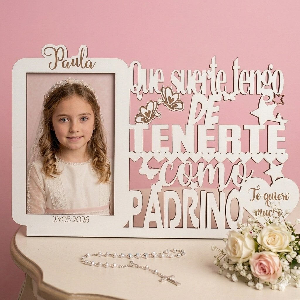 ¿Buscas el regalo de comunión perfecto y lleno de sentimiento? Sorprende a esa persona especial con nuestro marco de madera tallada personalizado. Es el detalle ideal para agradecer a tu madrina o padrino todo el cariño que te brindan.