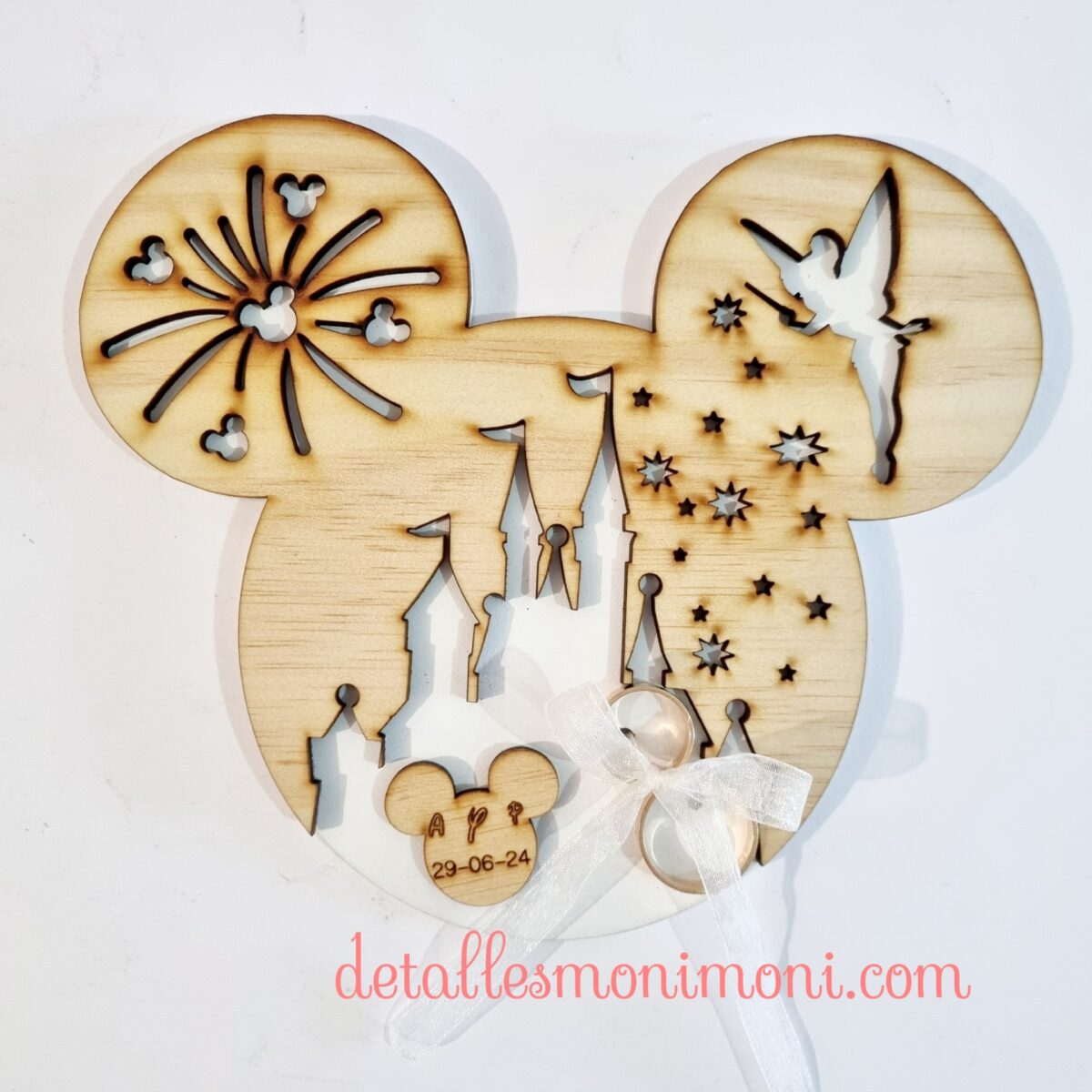 • Nuestro porta alianzas en forma de Mickey tridimensional, al ser un producto artesanal las medidas pueden variar unos cm.