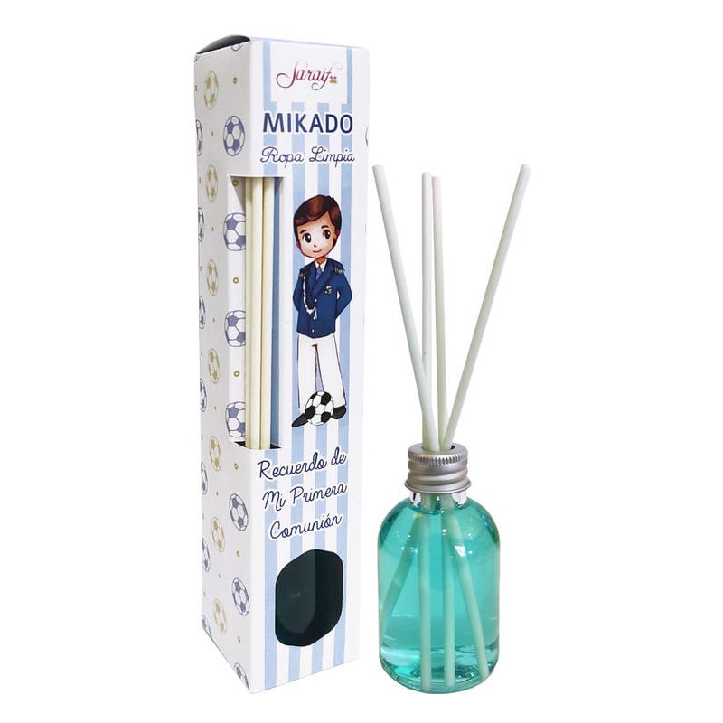 - Este mikado de comunión niño tiene una presentación preciosa con caja decorativa incluida acompañada con la frase, “Recuerdo de Mi Primera Comunión” con rayas azules y blancas en cartón