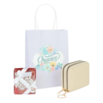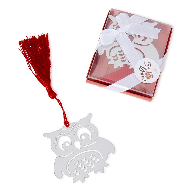 – Marcapáginas, ideal con diseño de un Búho de la suerte metalizado, borla separadora blanca y cajita a juego. La caja cuenta con una tapa transparente para poder ver el interior y veine adornada con lazo de organza blanco y etiqueta de agradecimiento. Sus medidas son: Marcapáginas 6 x 5’5 cm / Estuche: 7 x 9 x 2 cm.