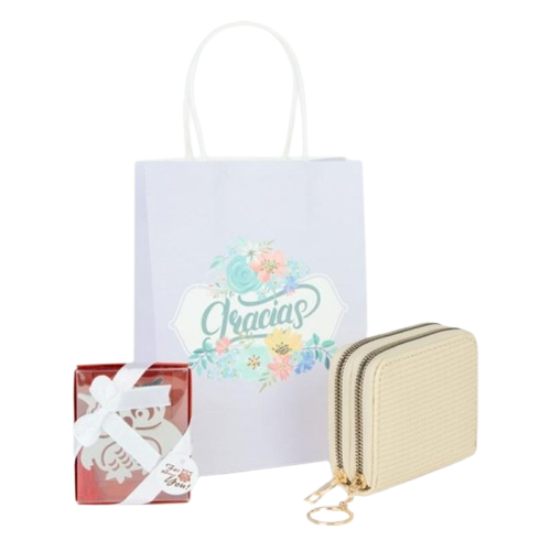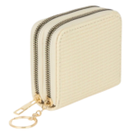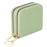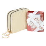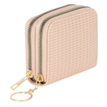 – Práctico monedero que no puede faltar en el bolso de tus invitadas de boda, con un bonito diseño de doble cremallera y acabados perfectos. Fabricado en pvc con detalles laterales, donde cabe todo lo necesario para salia a la calle. Inspirado en colores primaverales como el verde menta, rosa y beige, cuenta con cierres de creamlleras en dorado y arandela para poder colgar las llaves o asegurarlo dentro del bolso. Medidas 11,5 cm x 4 cm x 7,5 cm