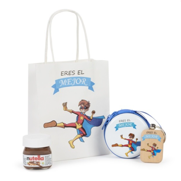 Con este set de llavero con funda de superheroína y Nutella, sorprenderás a los invitados más pequeños con un recuerdo económico, original y muy especial.