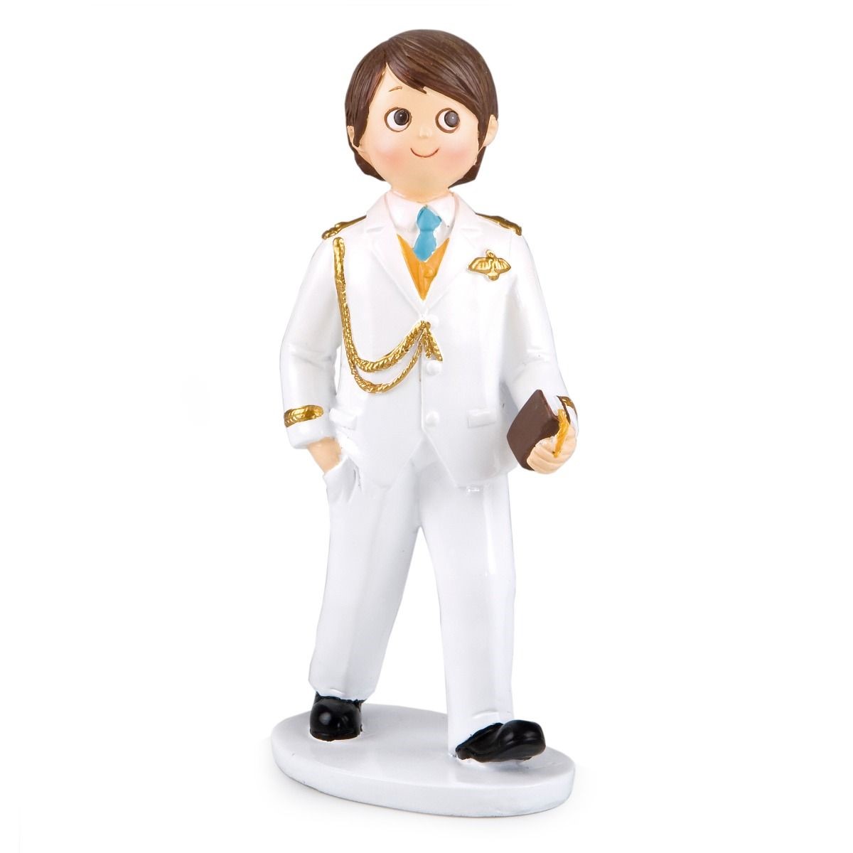 • Muñeco de comunión para tarta almirante, se trata de una simpática figura de comunión de niño con la imagen de un gracioso joven con su traje de almirante de color blanco listo y preparado para tomar su primera comunión.