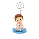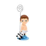 • El detalle para bautizo está elaborado en cerámica con un gracioso nene en dodotis acompañado de su peluche y pintada con detalles en tonos azul; como los patucos o la peana de la base, además puedes añadir unas peladillas y darle un toque mucho más elegante.