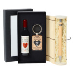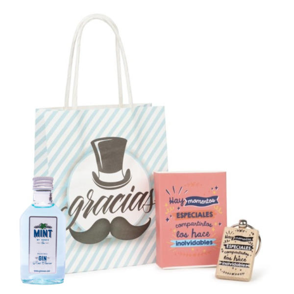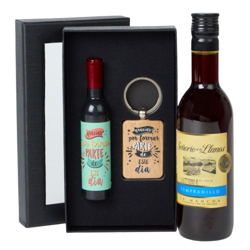-Por un lado el set que combina el abridor con imán y el llavero de madera, presentado en un estuche de color negro con tapadera transparente. El detalle de boda cuenta con unos diseños alegres y diferentes, que se sirven surtidos proporcionalmente en las tres frases: