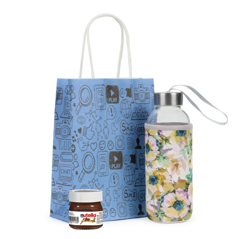 • Nuestro nuevo pack es la combinación perfecta con unos regalos seleccionados al detalle con los que, sin duda, sorprenderás a tus invitadas en el que incluye un bonito bidón modelo floral, un bote mini nutella 25gr  y una bolsa Kraft.
