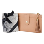 -Por un lado el pack de boda incluye, un precioso y práctico tarjetero que los encontraréis disponibles en tres actuales colores, que se sirven surtidos. Será el complemento con el que tus invitadas saldrán siempre de casa. Es ideal para llevar todo lo necesario como billetes, tarjetas y documentación, en compartimentos perfectamente organizados, en el mínimo espacio. Fabricado en pvc con cermallera metálica y tirador de borla decorativa, el detalle de boda cuenta por un lateral con compatimentos para las tarjetas y por el otro un bolsillo más amplio con cierre de botón tipo clip. Medidas 14 cm x 9 cm
