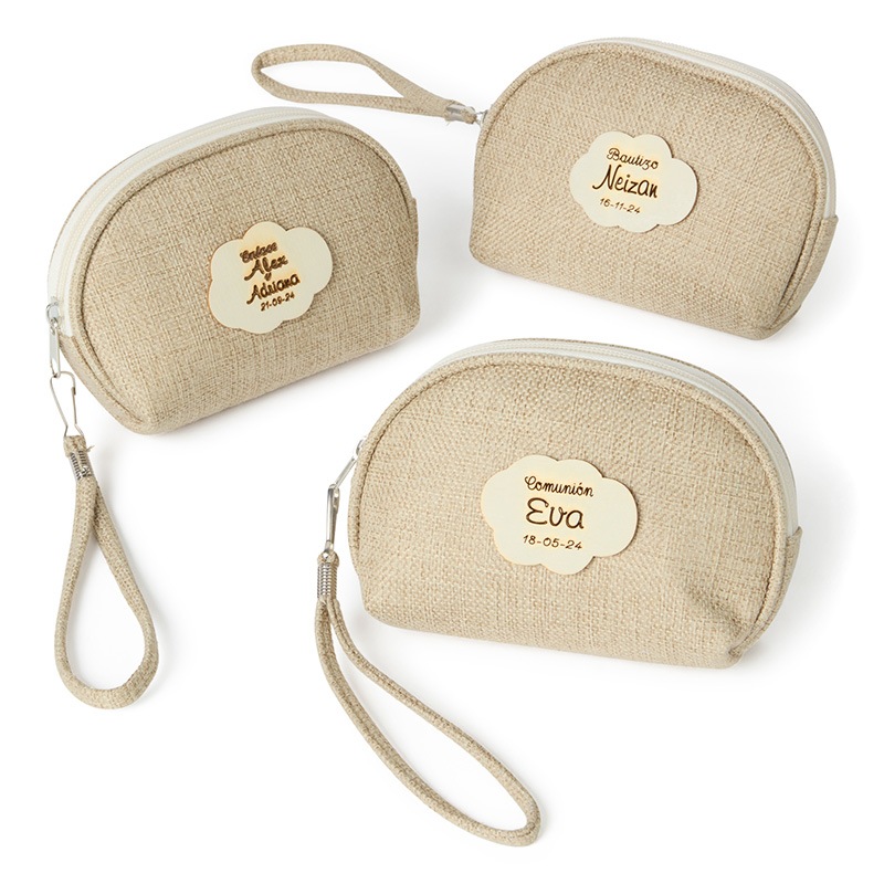 -Acompaña a este set nuestra joya de la corona, el portatodo nature con acabado en rafia y toques naturales, que encantarán a todas las invitadas al enlace. Con un diseño de líneas cuidadas y acabados redondeados, el portatodo cuenta con asa, también de rafia, muy útil para su transporte y cierre de cremallera. Como toque decorativo, el portatodo también cuenta con un sutil detalle en forma de nube de madera. La medida es 15cm. largo x 10 cm. alto x 4’5 cm. de ancho