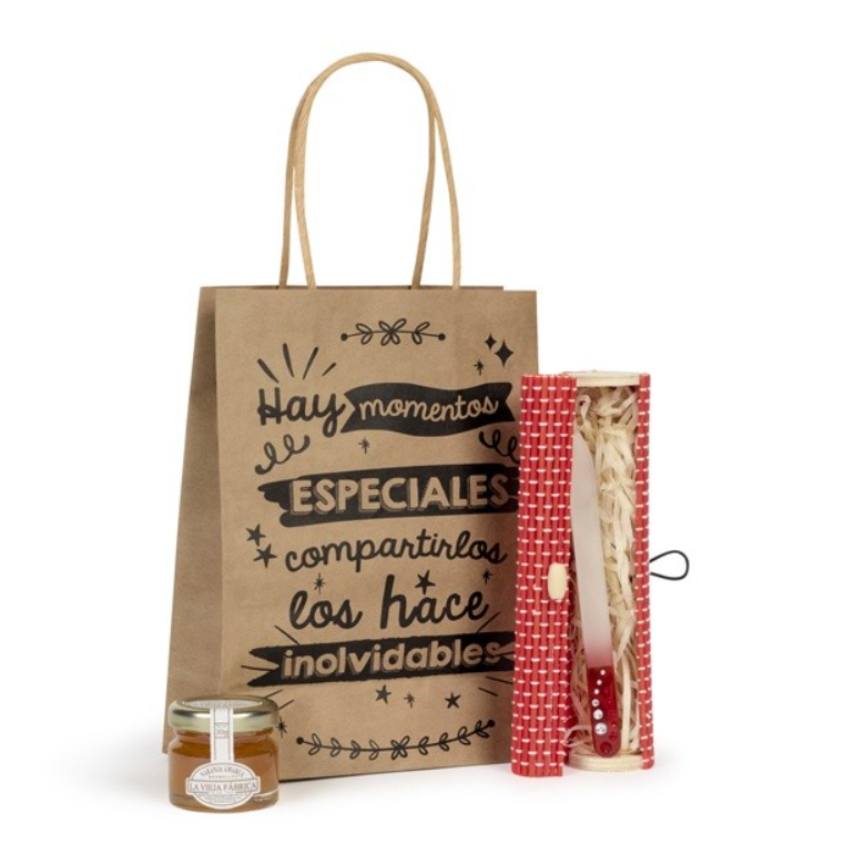- Combinación perfecta con regalos seleccionados al detalle con los que, sin duda, sorprenderás a tus invitadas con este pack en el que incluye una lima de cristal en estuche de bambú, un bote de mermelada sabor a elegir y una bolsa Kraft.