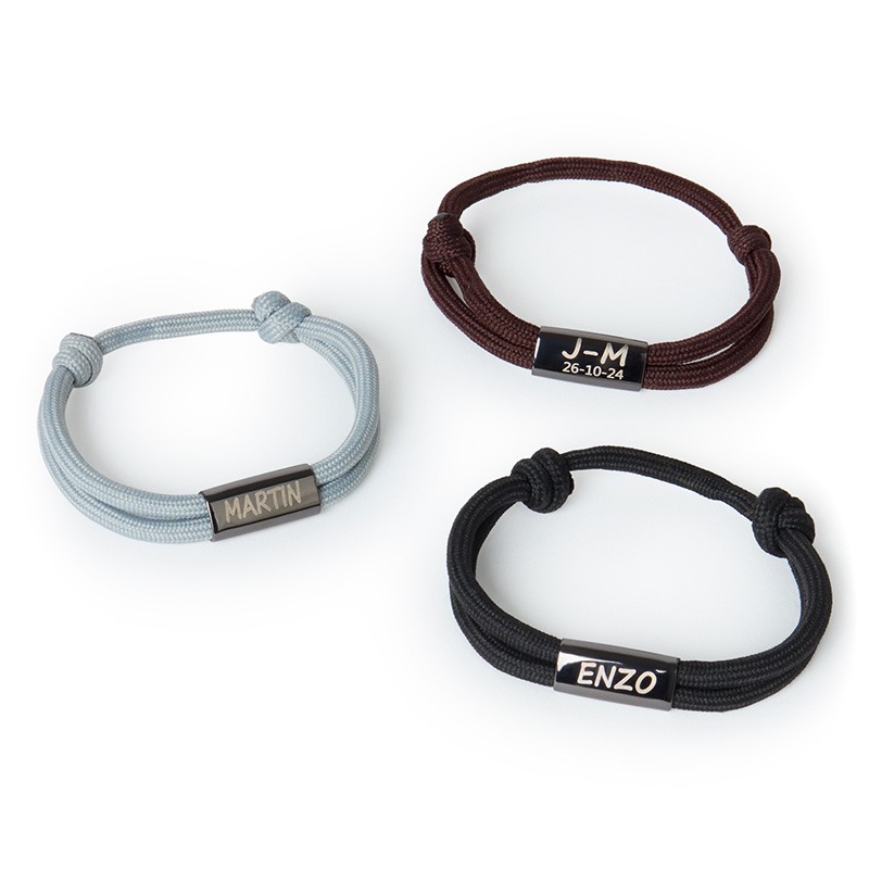 – Pulsera de nudos, un complemento perfecto para cualquier estilo que tus invitados lucirán encantados en su muñeca. Gracias a sus cuatro colores en pistacho, negro, azul y granate, esta pulsera se convertirá en uno de los detalles más destacados de la boda, adaptándose a cualquier medida gracias a sus nudos corredizos. Medidas: Blíster de cartón ondulado 9 x 8 cm / Pulsera 7 cm Ø.