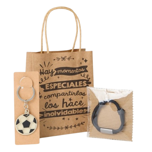 - Regala un detalle de boda diferente con esta combinación de regalos seleccionados al detalle con los que, sin duda, sorprenderás a tus invitadas que incluye dos detalles personalizables como son la pulsera de nudos y el llavero con pelota de fútbol.
