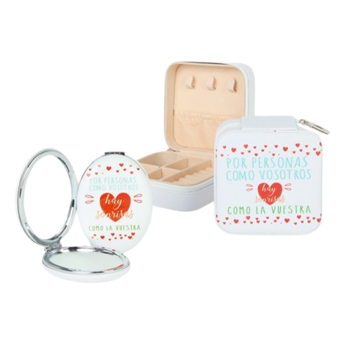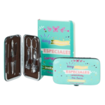 -Por un lado un práctico set de manicura con variedad de tonos y frases positivas. Unos originales detalles de boda  tan vistosos y alegres, que no habrá invitada que los pierda de vista. Con seis accesorios útiles para el aseo personal en manos, pies y cara, se convertirán en uno de los complementos favoritos de tus invitadas. La medida es de 10,5 x 6 cm. y se sirve surtido en los tres diseños.