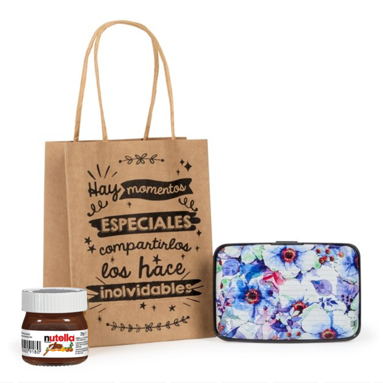 Pack tarjetero floral y mini nutella