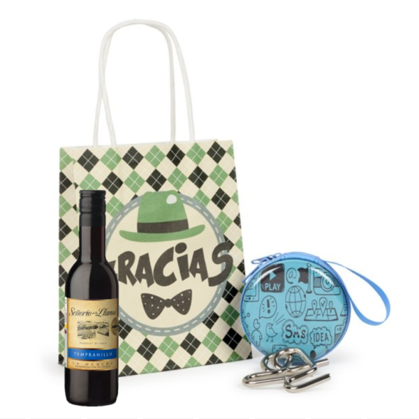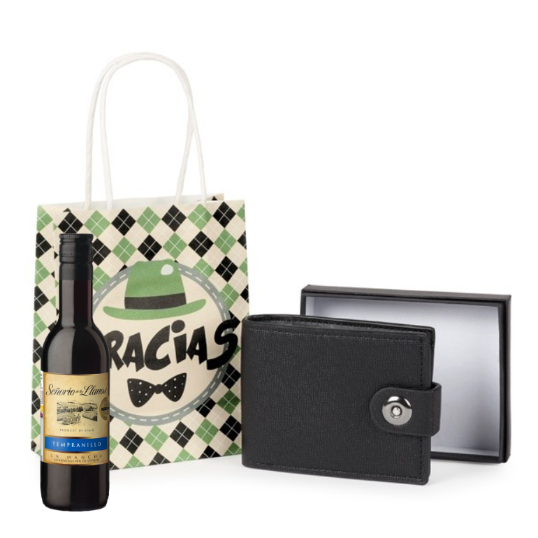 Más detalles sobre “Pack vino con cartera hombre” como detalles de boda para hombres: