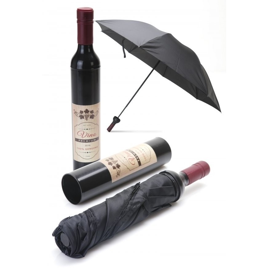 - Detalle de boda para hombre que es un fabuloso paraguas con forma de botella de vino.