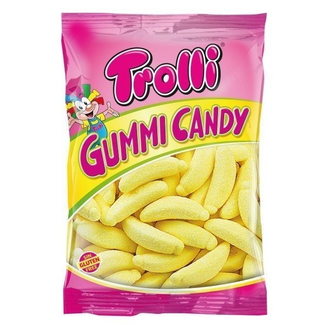 • Además de su sabor irresistible, los platanitos Trolli se destacan por su vibrante color amarillo, lo que los convierte en un elemento visual atractivo y divertido para tu mesa dulce. Puedes usarlos para completar una combinación de dulces temáticos, o para añadir un detalle colorido que resalte entre otros postres.
