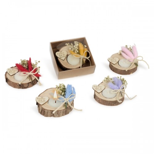 • Nuestro porta velas rústico es un detalle artesanal en materias primas naturales compuesto por un tronco de madera cortado con abertura para vela,