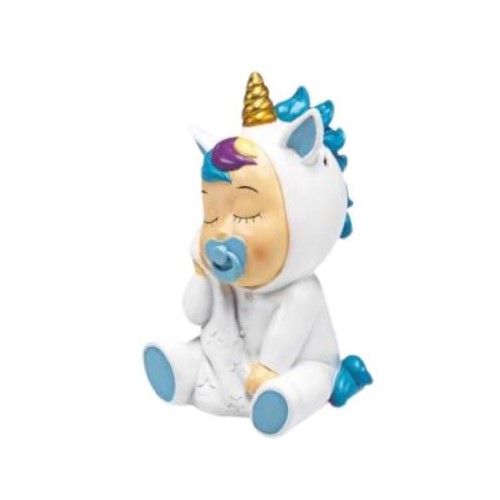Figura para tarta o pastel Bebé unicornio con manita celeste