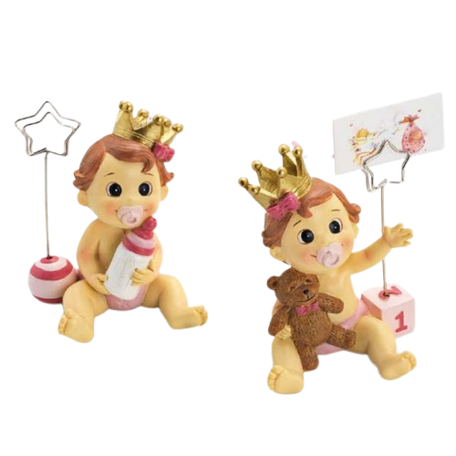 • Llena el bautizo de magia con estos portafotos fabricados en resina, con clip en forma de estrella metalizada, por un precio muy económico para la ocasión.