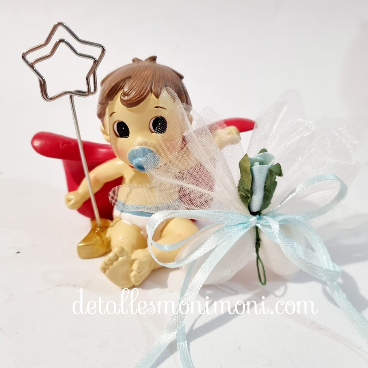 • Bonita combinación para los detalles de bautizo de niño y muy útil para que tus invitadas puedan colocar fotos o notas especiales en casa, además puedes añadir unas peladillas y darle un toque mucho más elegante.