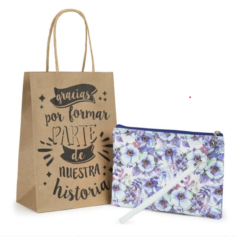 • Detalle de gran utilidad para llevar todo lo necesario y salir de casa sin necesidad de llevar un pesado bolso. Útil recuerdo de boda por sus dimensiones donde tus invitadas podrán llevar cualquier cosa en perfecto orden, cómodamente ya que lleva incorporada un asa para llevar colgado en la muñeca.
