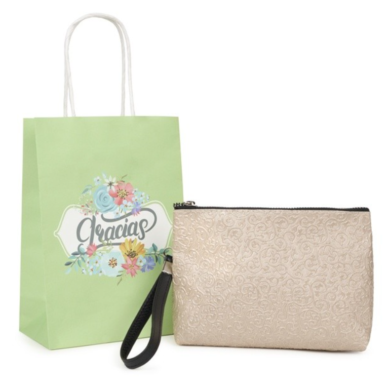 • ¡Uno de los más elegantes detalles para invitadas, este portatodo en polipiel en tres colores lisos que gustará a todas tus invitadas, simplemente por su diseño liso que combina siempre con cualquier tono que metas, con una cómoda asa para llevarlo colgado en la muñeca.