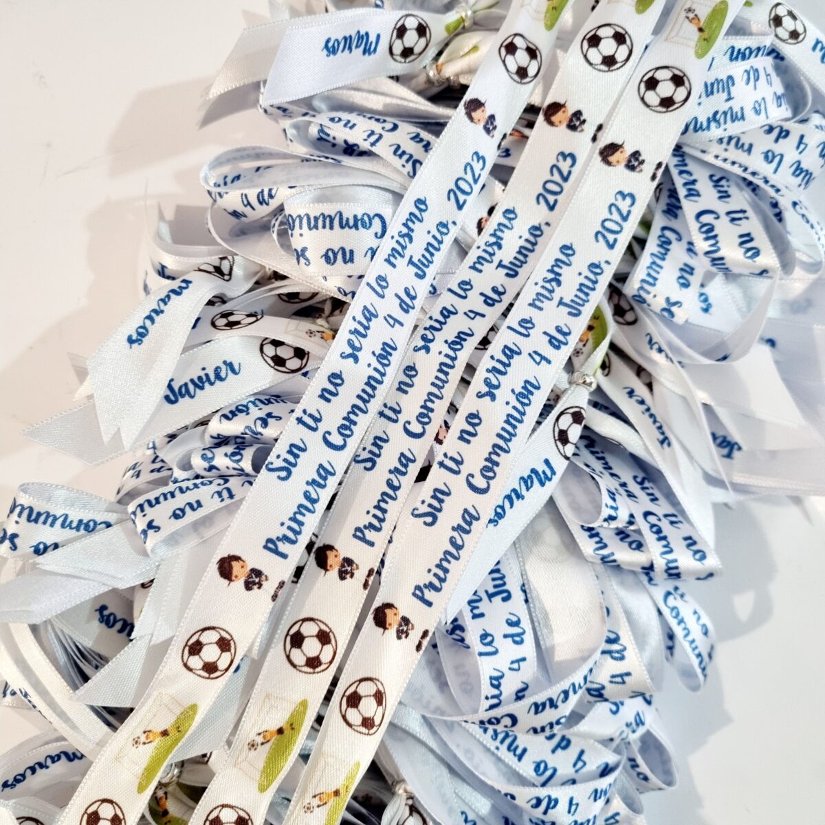 Más detalles sobre «Pulseras tela Comunión Futbol» como detalles para invitadas: