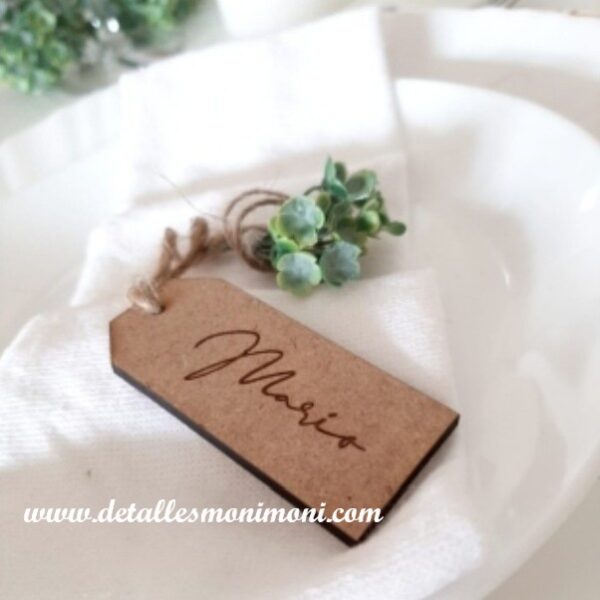 • Nuestros marcasitios son en material madera, su medida es de 5 cm aproximadamente con el nombre grabado.