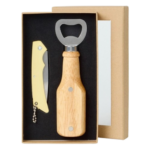 - Set que combina abridor de madera y la navaja clara personalizable, con grabación láser.