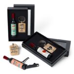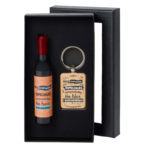 - Un pack completo listo para regalar a tus invitados, con una combinación original de 2 detalles muy prácticos, compuesto por un abridor en forma de botella con sacacorchos y abrebotellas con imán trasero, junto con un llavero en madera a juego con el mismo diseño