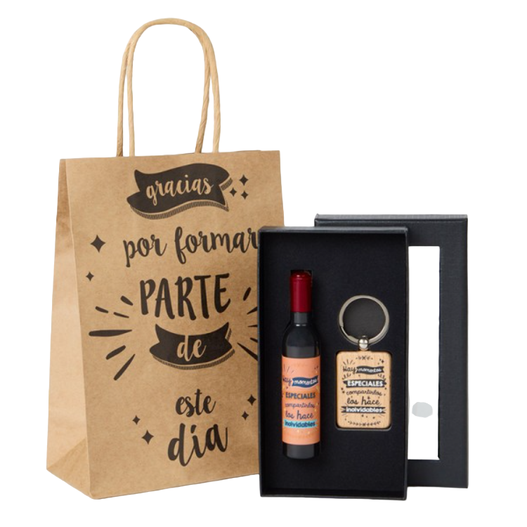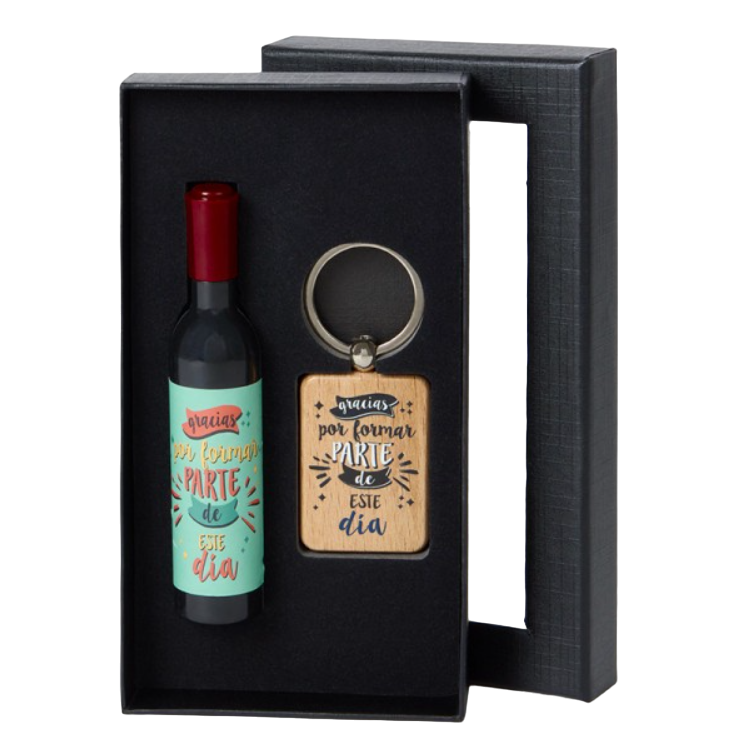 - Set botella abridor y llavero madera gracias, el detalle de boda perfecto para hombres