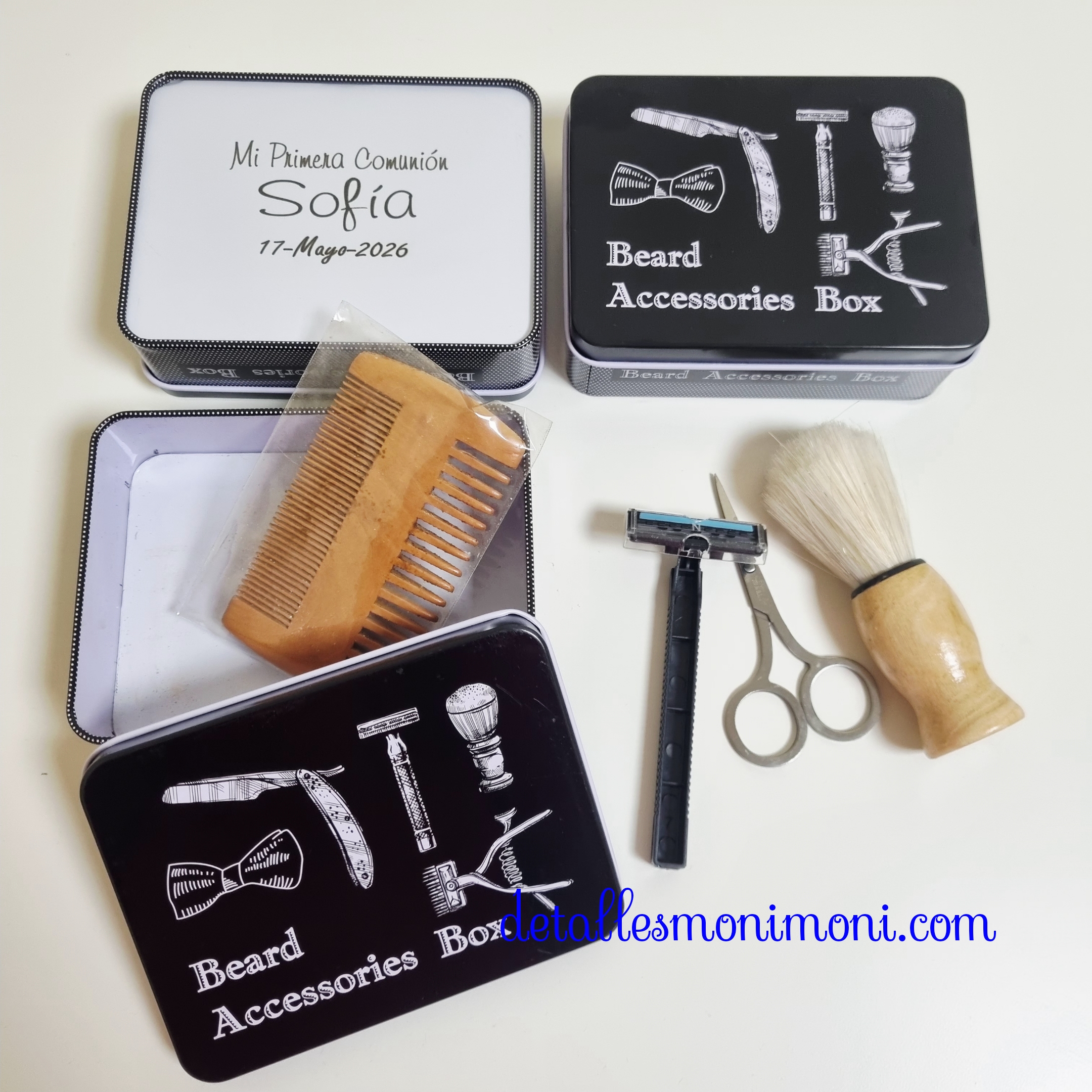 Sorprende a tus invitados con un detalle elegante, práctico y con estilo gracias a nuestro Set de Afeitado y Accesorios para Barba, un regalo perfecto para Comunión, Boda o Bautizo 🎁✨.