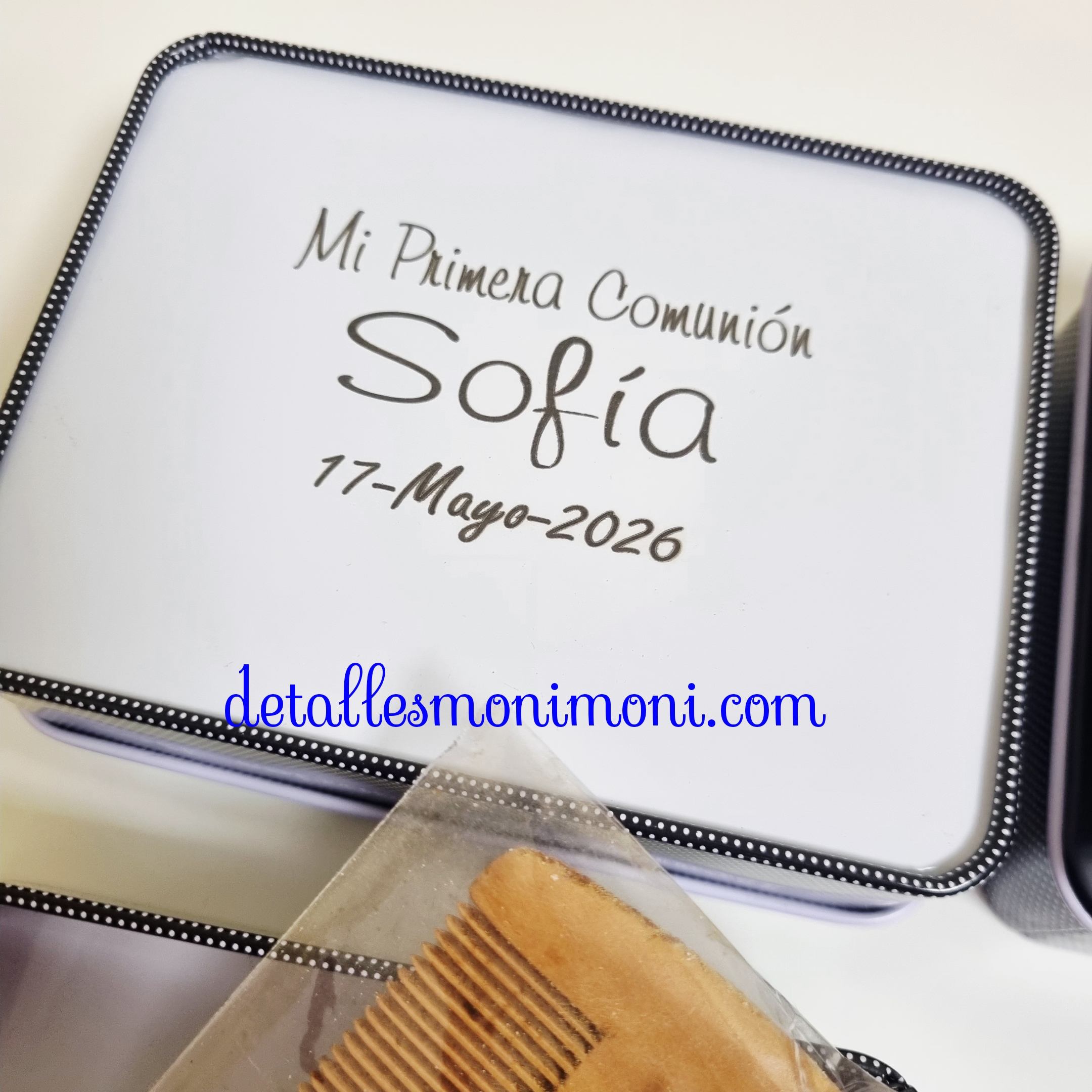 El set se presenta en una caja de 12 x 9 x 4 cm, perfecta para entregar directamente a los invitados.