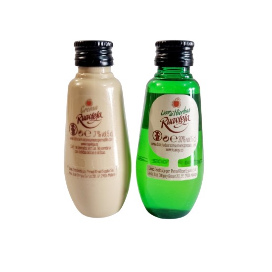 –Licor de hierbas marca Ruavieja, con una capacidad de 50ml. con un grado alcohólico de 30 % vol.