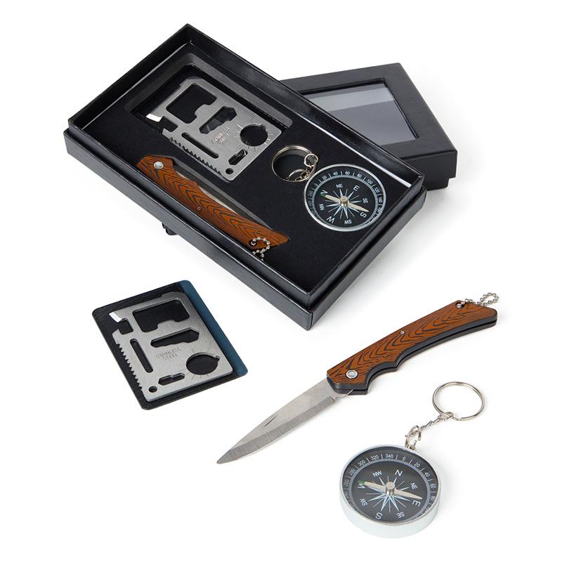 Más detalles sobre «Set con navaja, multiherramienta y llavero brújula» para Detalle Boda: