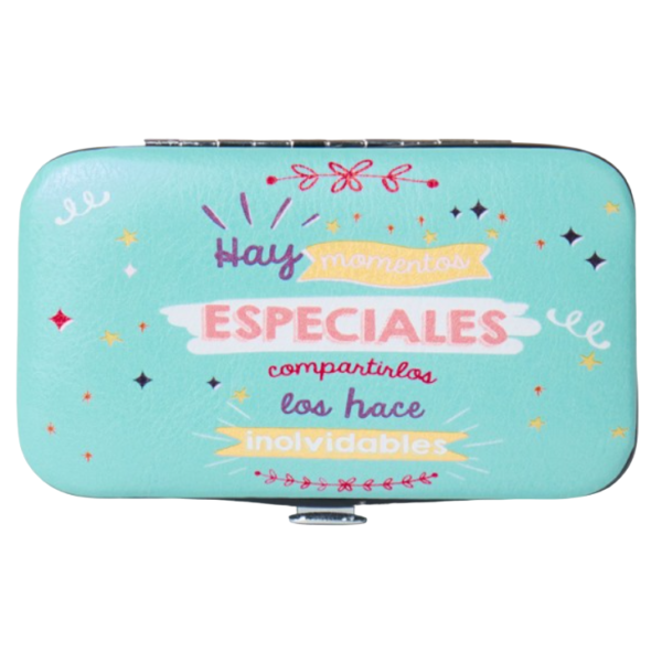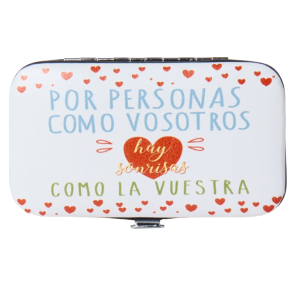 - Contiene: 2 cortauñas, 1 tijeras, 1 lima, 1 pinza y un quita cutículas
