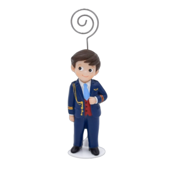 • Detalle para Comunión, sujeta tarjetas o sujeta fotos con la figura de un niño con su traje de Comunión , listo para tomar su Primera Comunión.