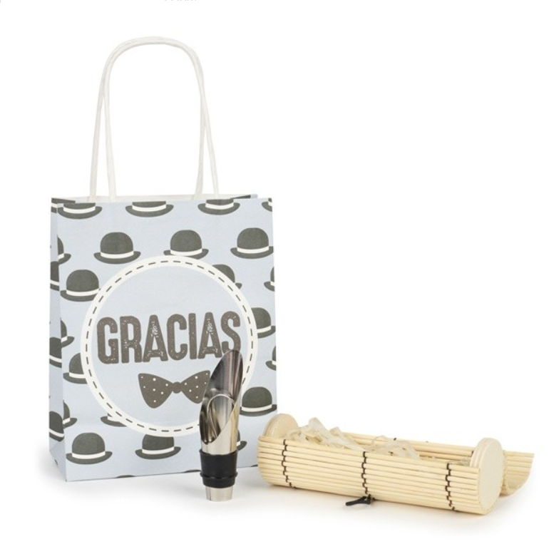 –Bolsa Kraft Gracias, diseño caballero con medida 12 cm ancho x 16 cm de alto x 6 cm de fondo