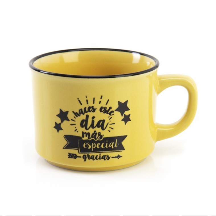 • Esta taza con frases para detalle de boda se sirve surtida de frases y colores, en verde, amarillo y blanco mate, es decir, la recibirás en cantidades proporcionales de todos los colores y frases disponibles.
