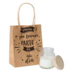 - Cada velita viene en tarro de cristal transparente, con cera blanca que contrasta a la perfección con la tapa de madera, aportando al recuerdo de comunión un toque rústico y natural para tus detalles.