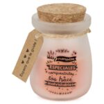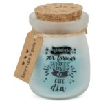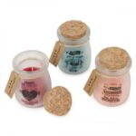 • Vela en cristal satinado con tapón corcho y frases felices en tres bonitos diseños con la que tus invitadas recordarán siempre el día de tu boda: